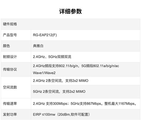 銳捷易網(wǎng)絡(luò)二代RG-EAP212(F)/(G)1200M雙頻無線吸頂放裝AP