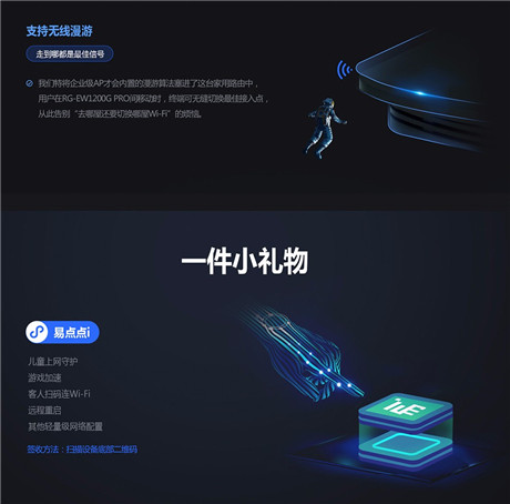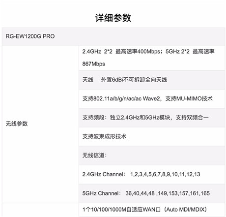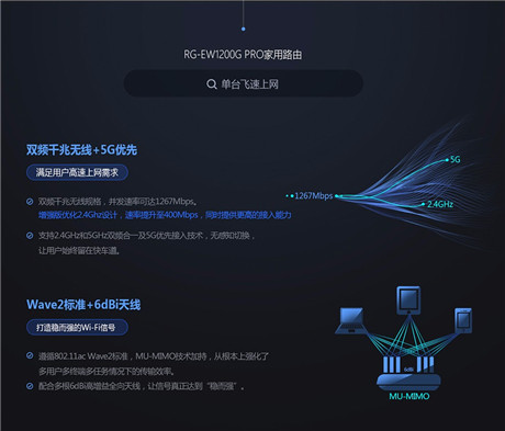 銳捷睿易路由器全千兆雙頻家用無(wú)線1300M千兆端口 RG-EW1200G PRO