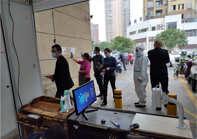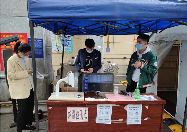 我們對外來訪客嚴格把控,社區(qū)工作人員及漢天的同事們每天對所有外來人員使用疫情防疫應急管理系統(tǒng)做好體溫測量并登記基本信息等防控工作,如有異??梢约皶r上報