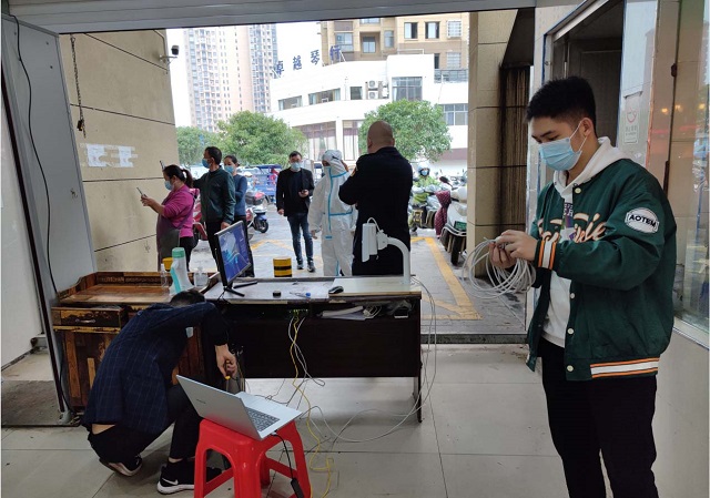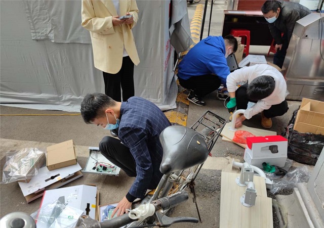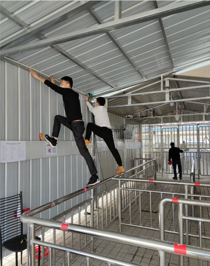 勤勞的漢天人,在仔細的組裝并且檢查疫情防疫應急管理系統(tǒng)的各個零件