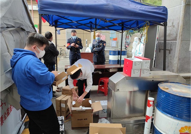 大家正在和值勤人員討論著目前防疫工作的進行情況,力求每一步都做到嚴格防控!