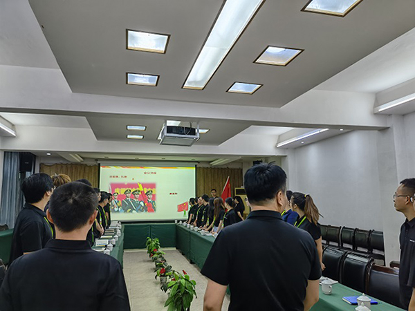 年中會(huì)議正式開始,全體起立, 迎國(guó)旗、隊(duì)旗,奏國(guó)歌!