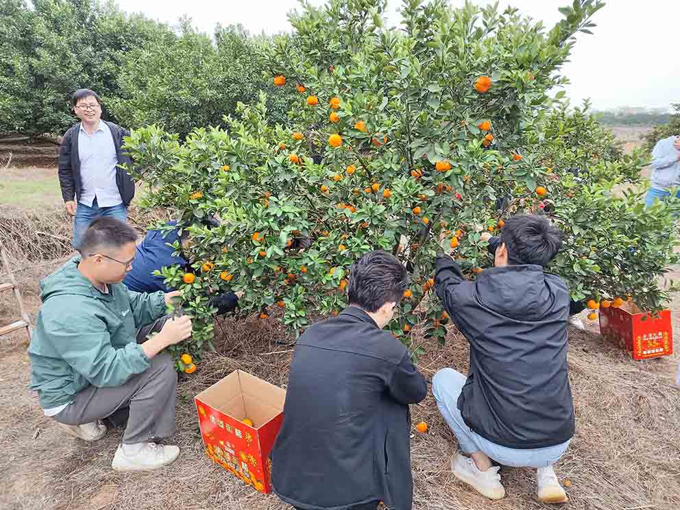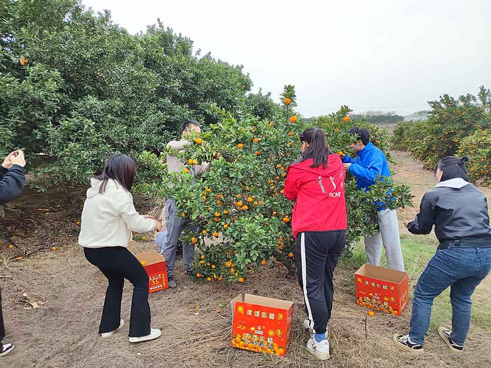 飯后,漢天的男神女神們手提箱子,在橘園等待。隨著總經(jīng)理一聲令下,采摘能手們臉上洋溢著微笑,眼疾手快,使出渾身解數(shù)采摘橘子。