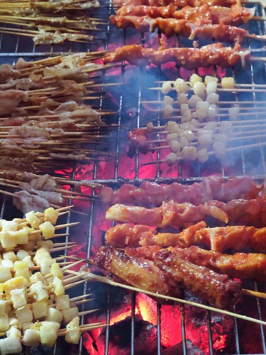 一到傍晚,小伙們就發(fā)食材,迫不及待地開始動手燒烤了,歡聲笑語中大家分工明確。