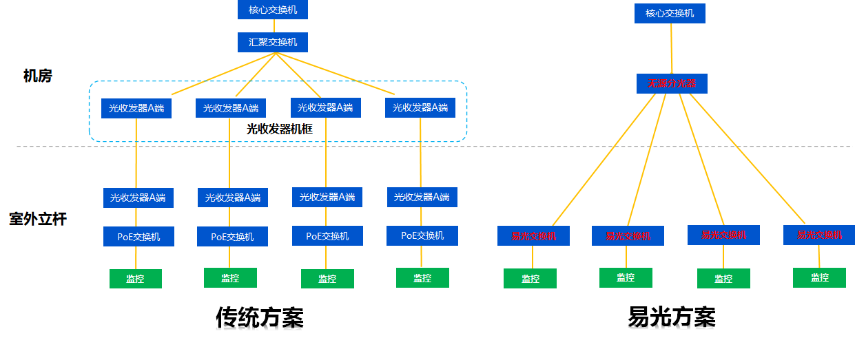 4、機(jī)房?jī)?nèi)外都簡(jiǎn)潔,節(jié)省大量光纖收發(fā)器,讓室外防水箱更清爽,機(jī)房安裝簡(jiǎn)單美觀(guān)好驗(yàn)收,捋線(xiàn)排障更高效