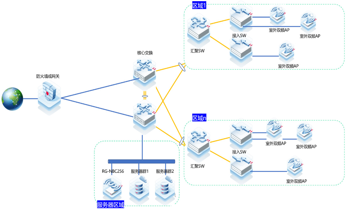 景區(qū)WIFI具有客流密集、室外環(huán)境復(fù)雜等特點(diǎn),為滿足景區(qū)的上述需求,特采用室外WIFI6AP部署;所有AP均采用硬件無(wú)線控制進(jìn)行統(tǒng)一管理。wifi6具有下述特點(diǎn):