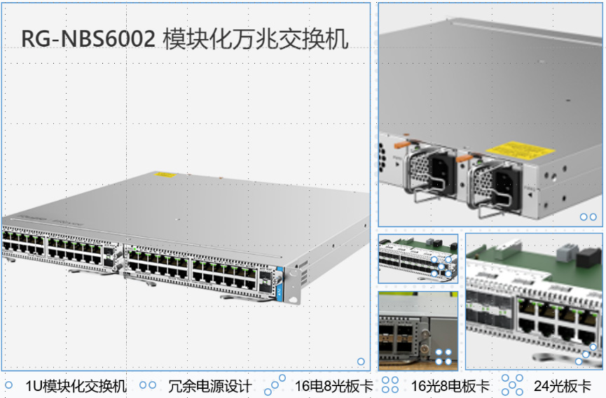RG-NBS6002是銳捷最新發(fā)布的一款模塊化1U交換機(jī),具有以下特點(diǎn):